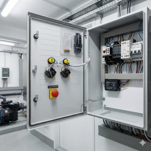 Monofaze Kaçak Akım Korumalı Havuz Kontrol Panosu - Motor Koruma Şalterli ve Zaman Saatli